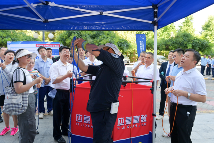 电动自行车电池的穿刺实验,让大家实际感受到了电池在击穿状态下的危险程度,提示了电动自行车应规范购置、不私自改装,电瓶及电动自行车不进楼入户,要停放在集中停放、充电场所;烟热环境模拟逃生让体验者切身感受到“畅通生命通道”的意义,深刻认识到日常工作中维护好“消防疏散指示标识”在关键时刻能救命;拥挤踩踏应急处置让大家在紧急疏散的过程中避免受到更多的伤害,掌握安全绳扣的栓系方法便于快速从高处降至安全地带,心肺复苏及AED的正确使用让大家知道如何自救互救,出真水灭真火让大家熟练掌握了初期火灾的应对方法。
