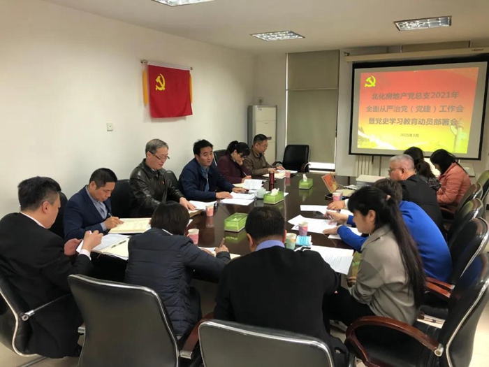 3月18日,北化房地产党总支召开党史学习教育动员部署会,党总支书记、董事长、党史学习教育领导小组组长王强作动员讲话,公司党总支委员、基层党支部支委会全体成员参加会议。