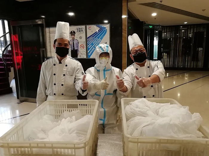 此次专项任务最关键的环节,就是送餐和收纳生活垃圾。接送餐饮,收纳垃圾都在每个房间的门口。当送餐和收纳垃圾这一艰巨任务摆在大家面前的时候,东方宾馆的同志们没有退缩,纷纷要求接下这一任务,特别是共产党员、餐饮部经理周丽丽,共产党员、办公室主任张艳红,强烈要求主动上岗。宾馆党支部考虑到周丽丽专业性更强,最终决定由她来负责每天的送餐和生活垃圾收纳工作。