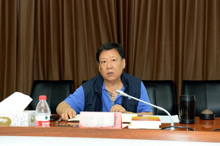 苏建军以《坚持党的领导,发挥制度最大优势,保障国有企业持续、健康、高质量发展》为题作重点研讨发言。