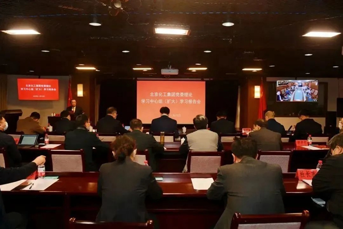 为深入学习宣传贯彻党的二十大精神,推动集团实现更高质量发展,11月15日下午,北京化工集团党委召开理论学习中心组学习(扩大)视频报告会,邀请3位化工行业专家、学者作专题报告。集团领导班子成员和高管人员,总部正、副部长,各二级单位领导班子成员及研发、规划相关科技人员参加学习。北京化工集团党委书记、董事长王国华参加学习并作学习总结,党委副书记吴瑞峰主持学习。
