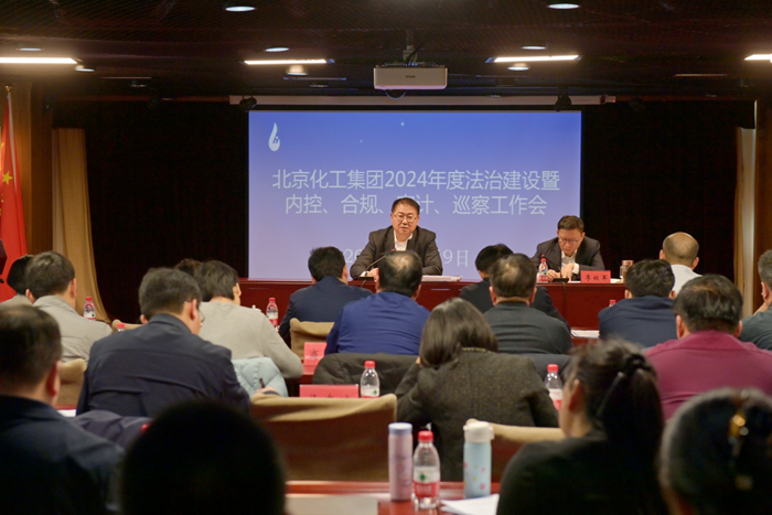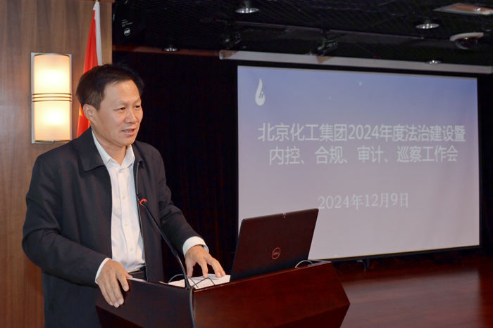 12月9日下午,北京化工集团召开2024年度法治建设暨内控、合规、审计、巡察工作会,党委书记、董事长陈宇作总结讲话,副总经理李效军主持会议。
